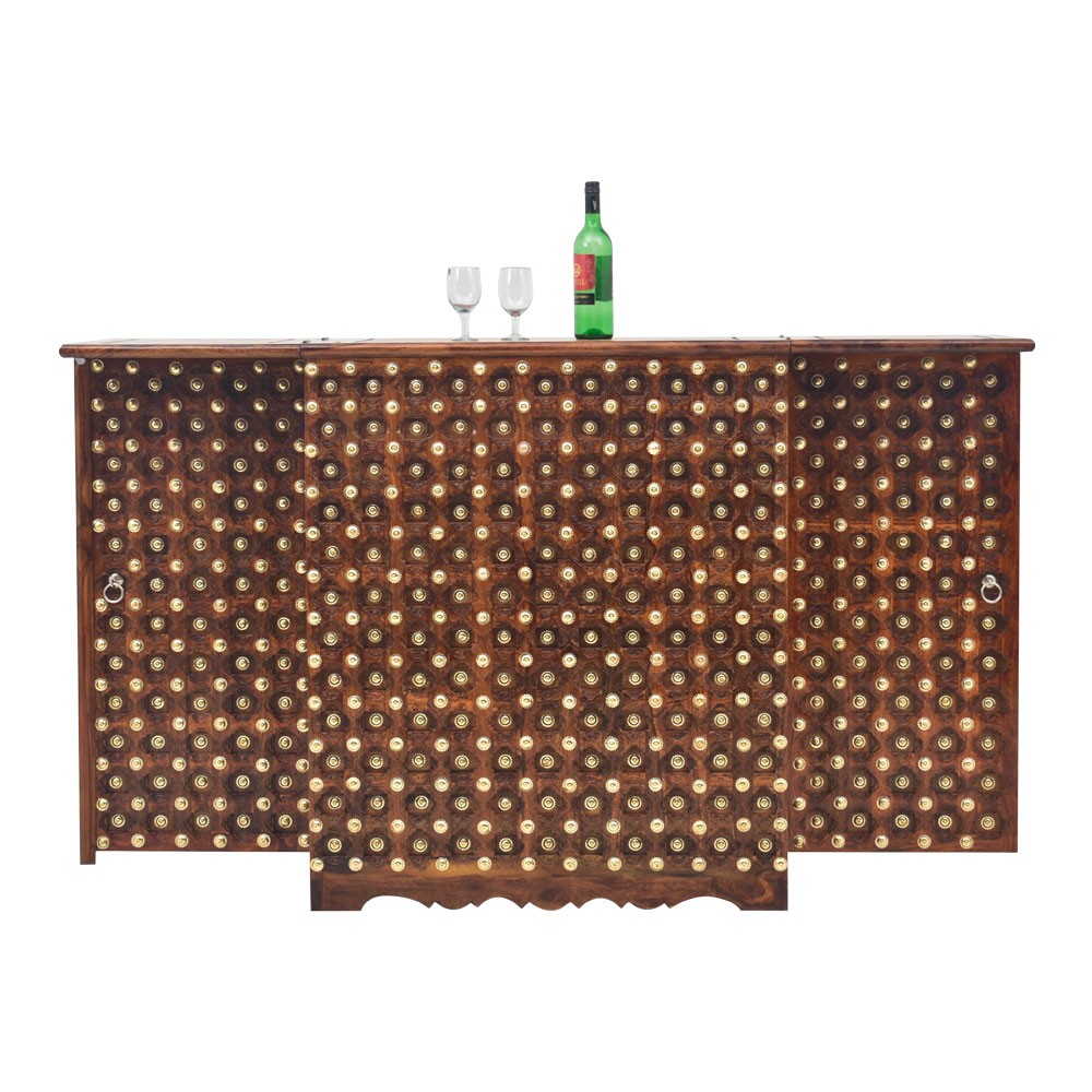 Asian art Exports designed for wine storage cabinet feature and elegance. This beautifully crafted bar cabinet is well decorated with brass, ceramic tiles , made up of solid wood and hand carved that reflects the rich culture of Rajasthan. Royal Art and Space Utility. This wine cabinet is the perfect solution for aficionados. we provide a full-size wine bar, featuring storage for wine bottles, have wine glass racks manufactured for wine and barware. These storage cabinets are a great addition to any home!
